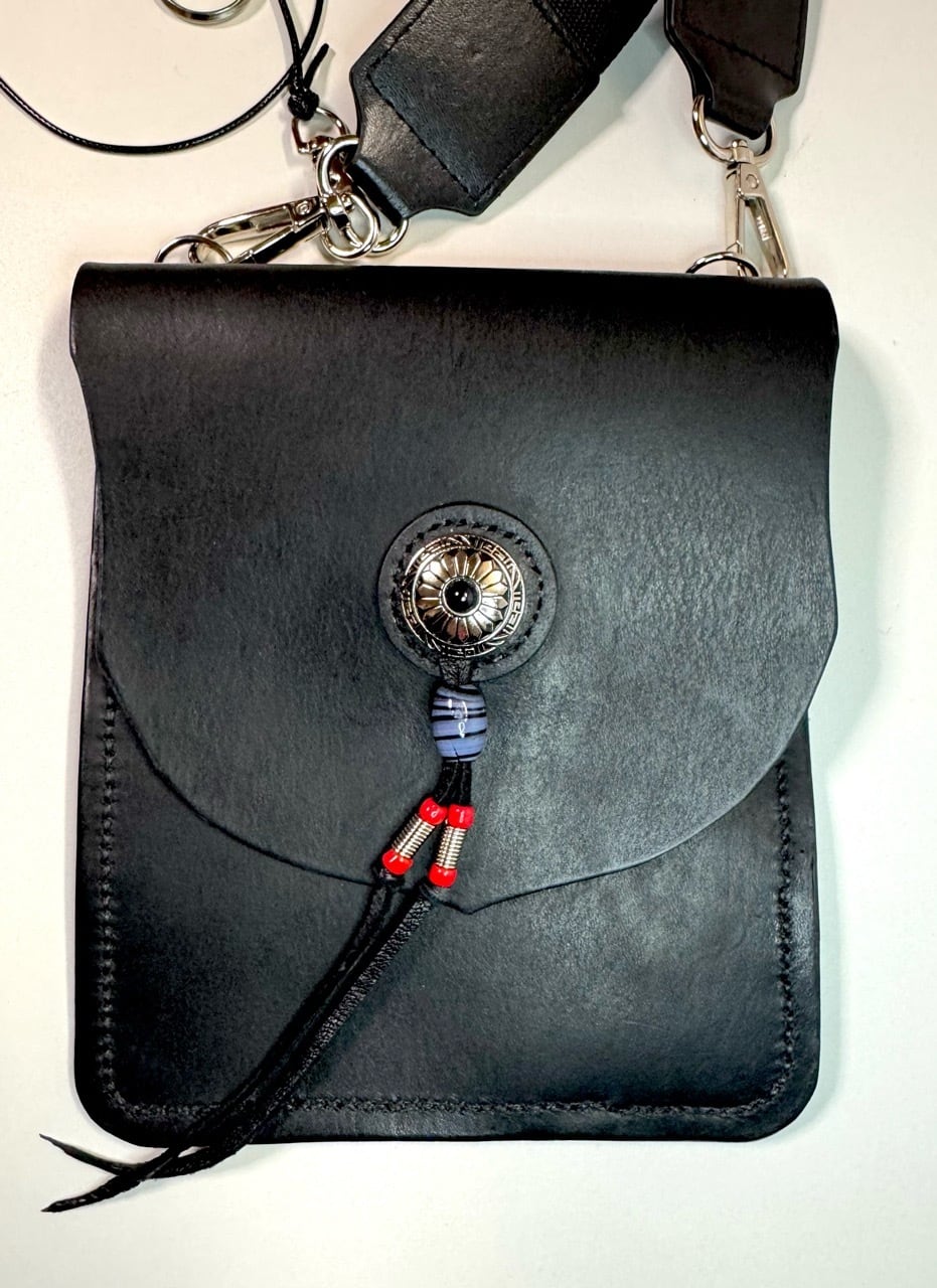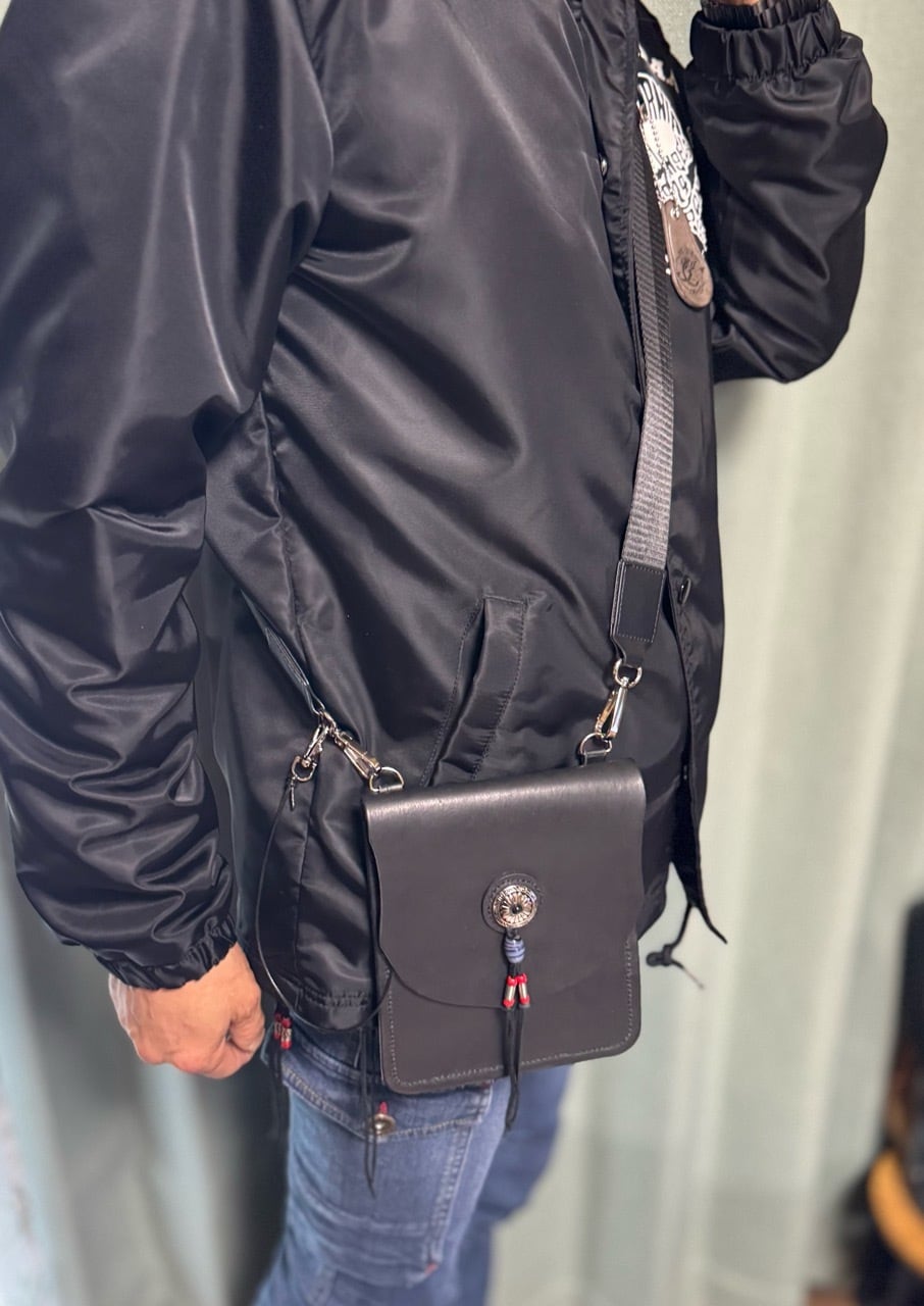 イタリアンレザー使用 オリジナルポーチ(コンチョ・黒)