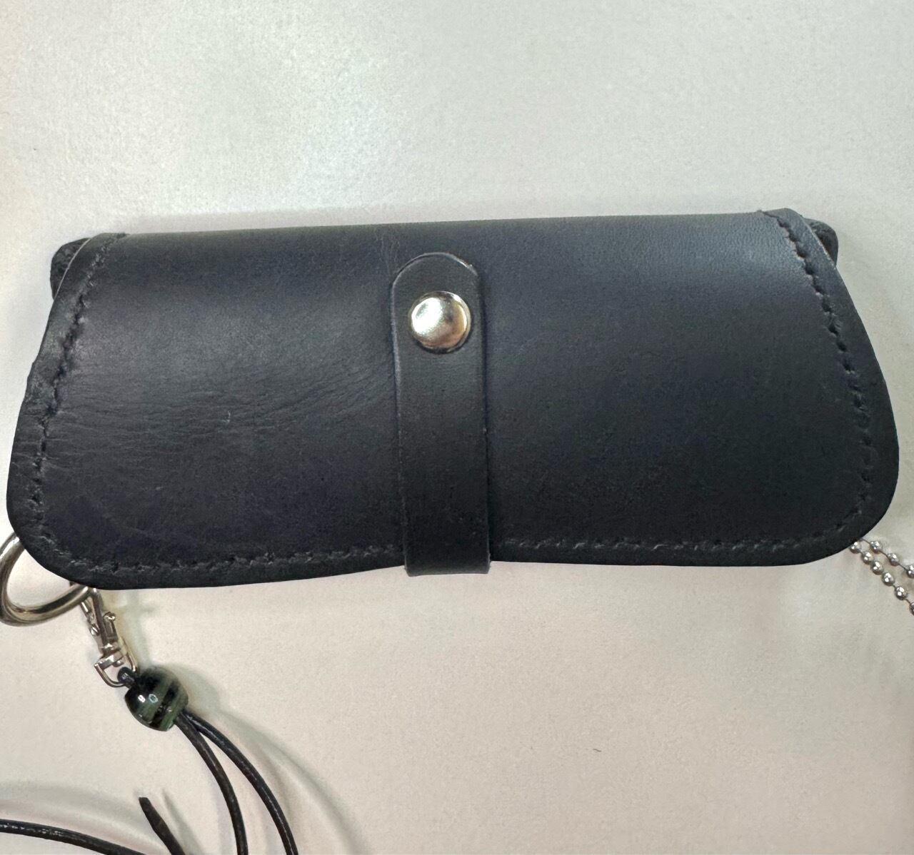 栃木レザー使用 オリジナル・ストラップ付メガネケース(黒)