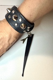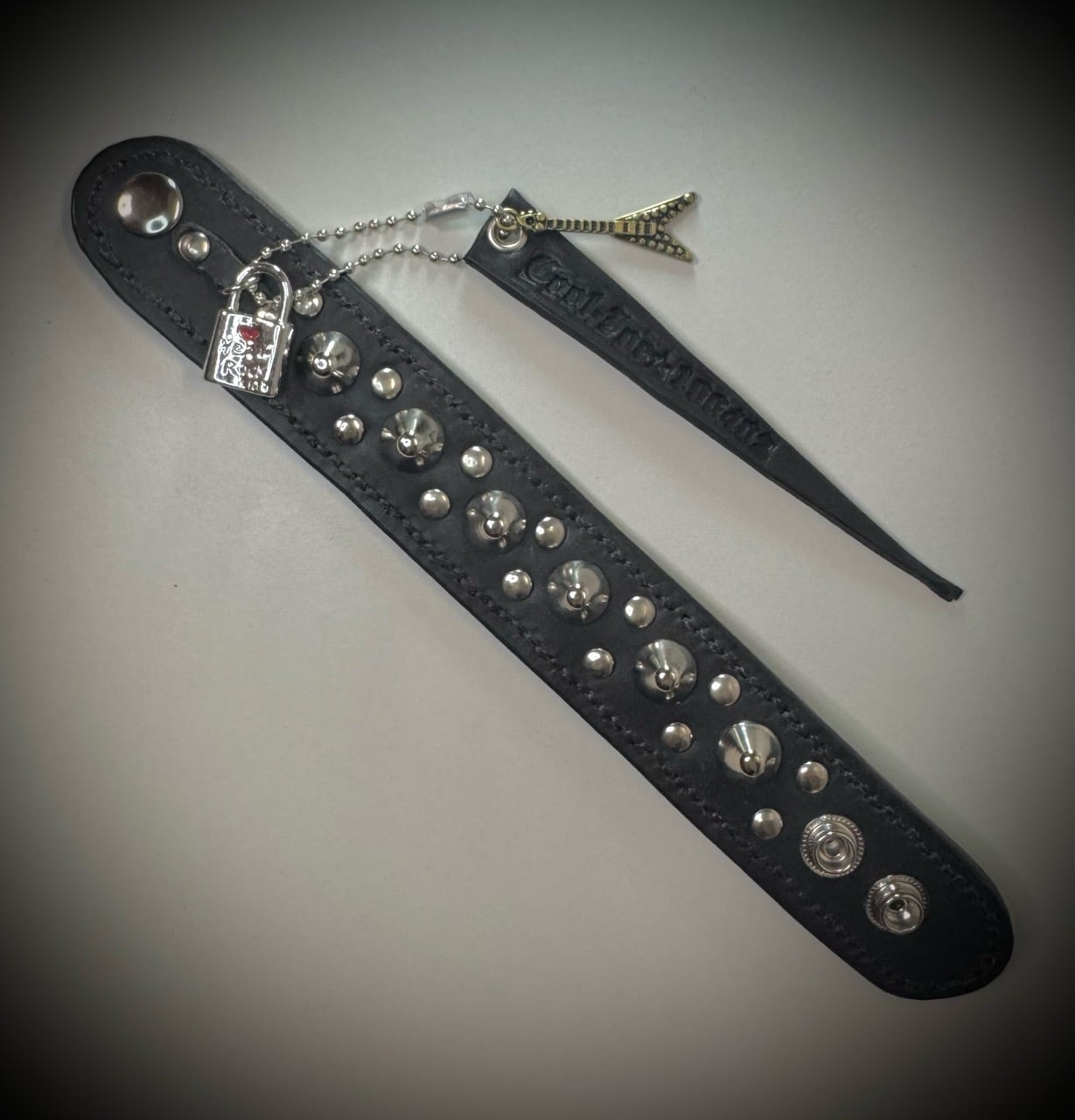 栃木レザーを使用したオリジナルのスタッズリストバンドです。