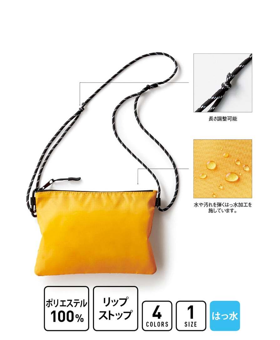 水や汚れを弾くはっ水機能を施した、ポリエステル素材のサコッシュ。小ぶりながらも調節可能なショルダーや、便利で嬉しい内ポケットもあって使い勝手もばっちりです。取り外し可能なカラナビ付きなので、ベルト紐やバッグにも取り付け可能。