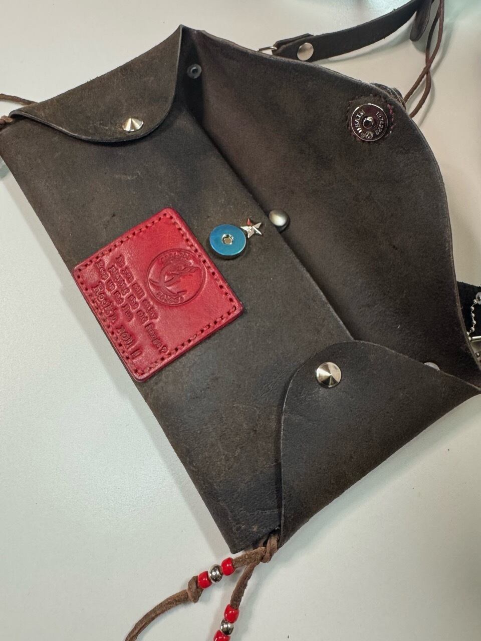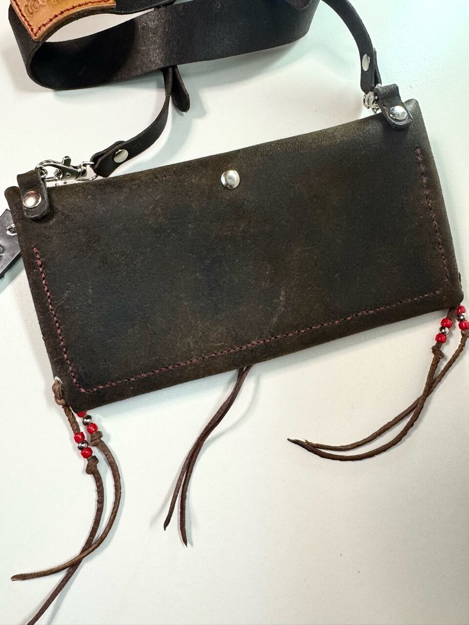 一枚革から型抜きし、すべて手縫いで仕上げたオールハンドメイドの一点物です。