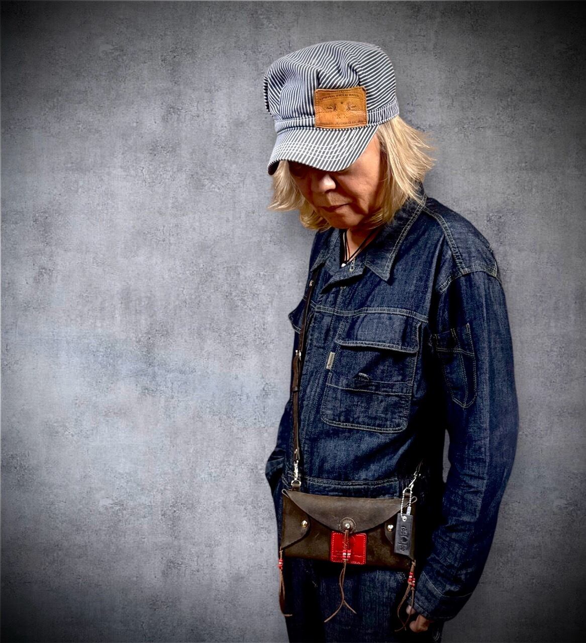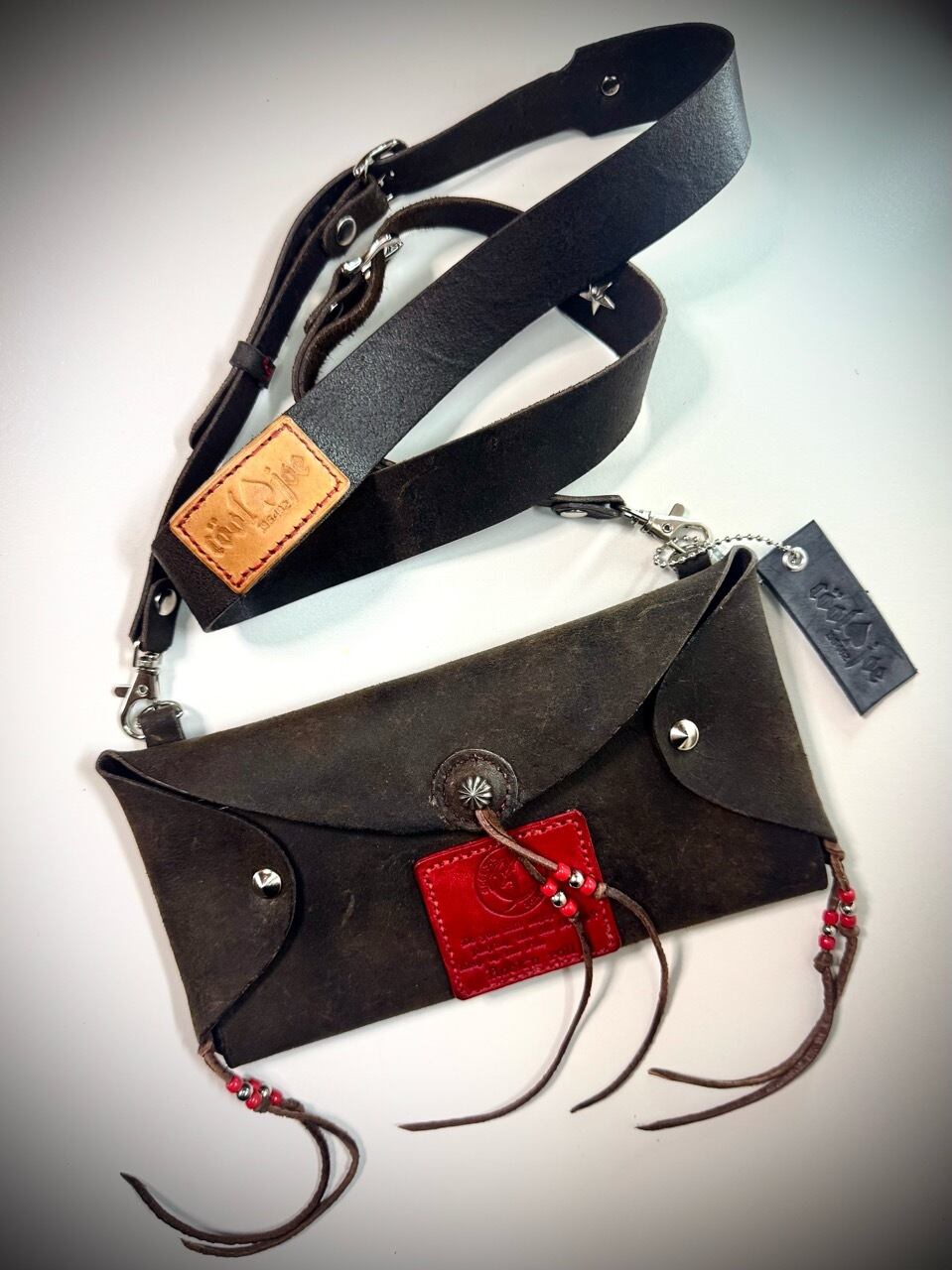 RAMBLERレザー使用 オリジナルレザーポーチ(WINTER SMOKE×RED)