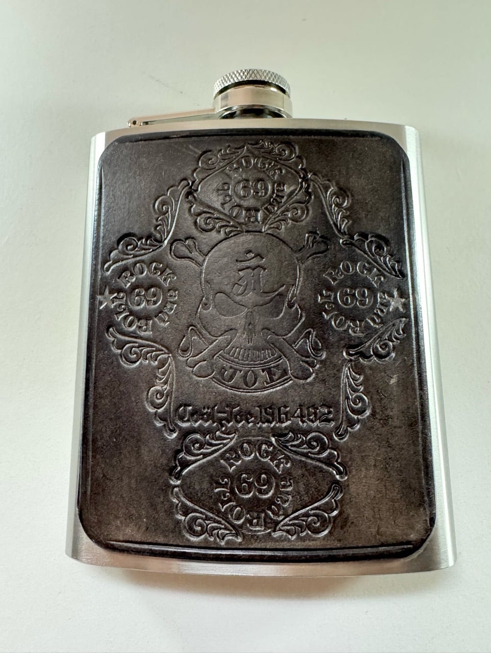 ・スキットル本体にオリジナルのレザータグが付いています。