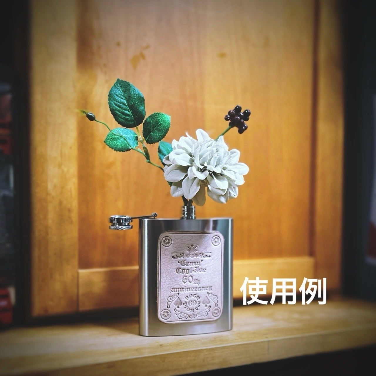本来は、スキットル⇒アルコール度数の強い酒を入れて持ち運ぶものですが、お部屋のインテリアや一輪挿しの花瓶の代わり等で使っていただけると思います。