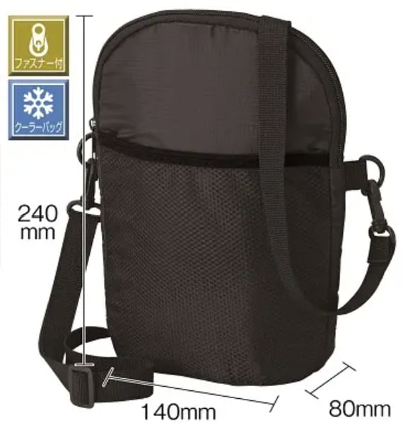 肩掛け用のひもは取り外し可能 外せば大き目な保冷用ポーチとしてバッグに入れて持ち歩き可能。表側にメッシュ地のポケットあり。ちょっとした小物の収納に活用できます。