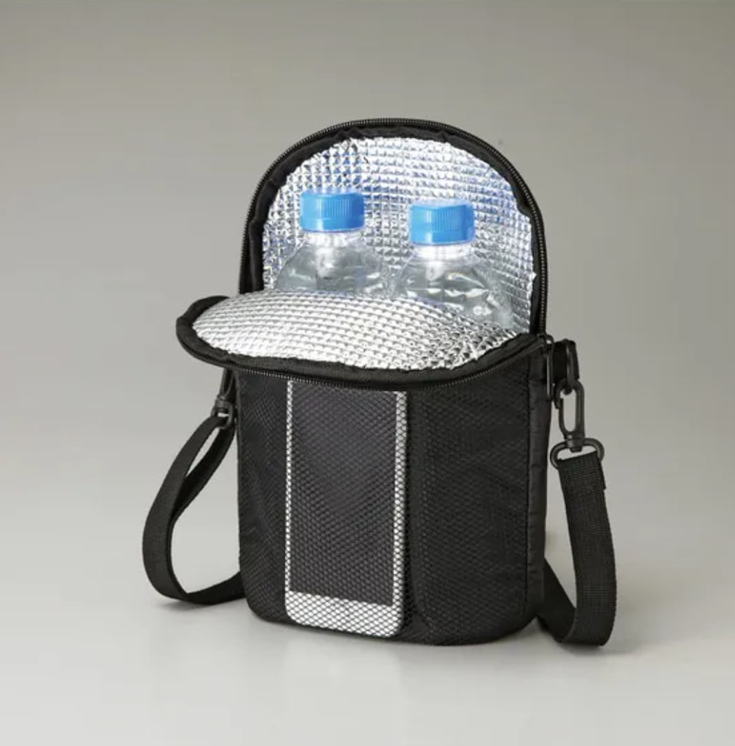 ペットボトルが2本収納可能なショルダーバッグ型のペットボトルホルダー。