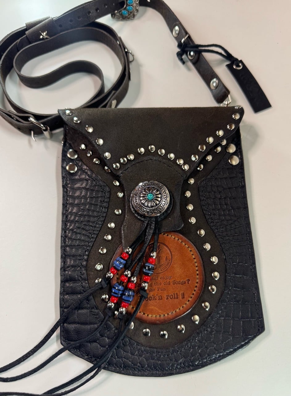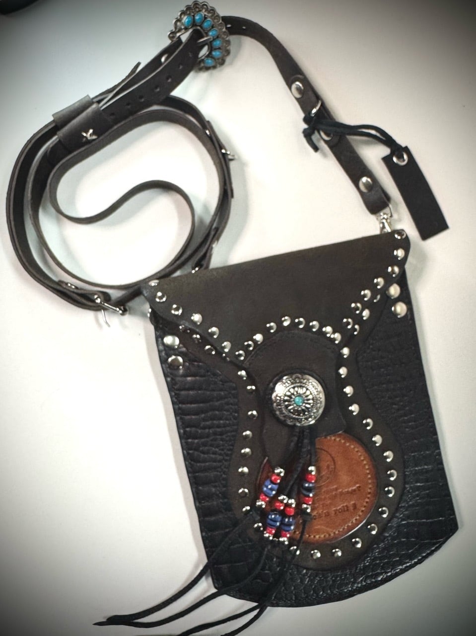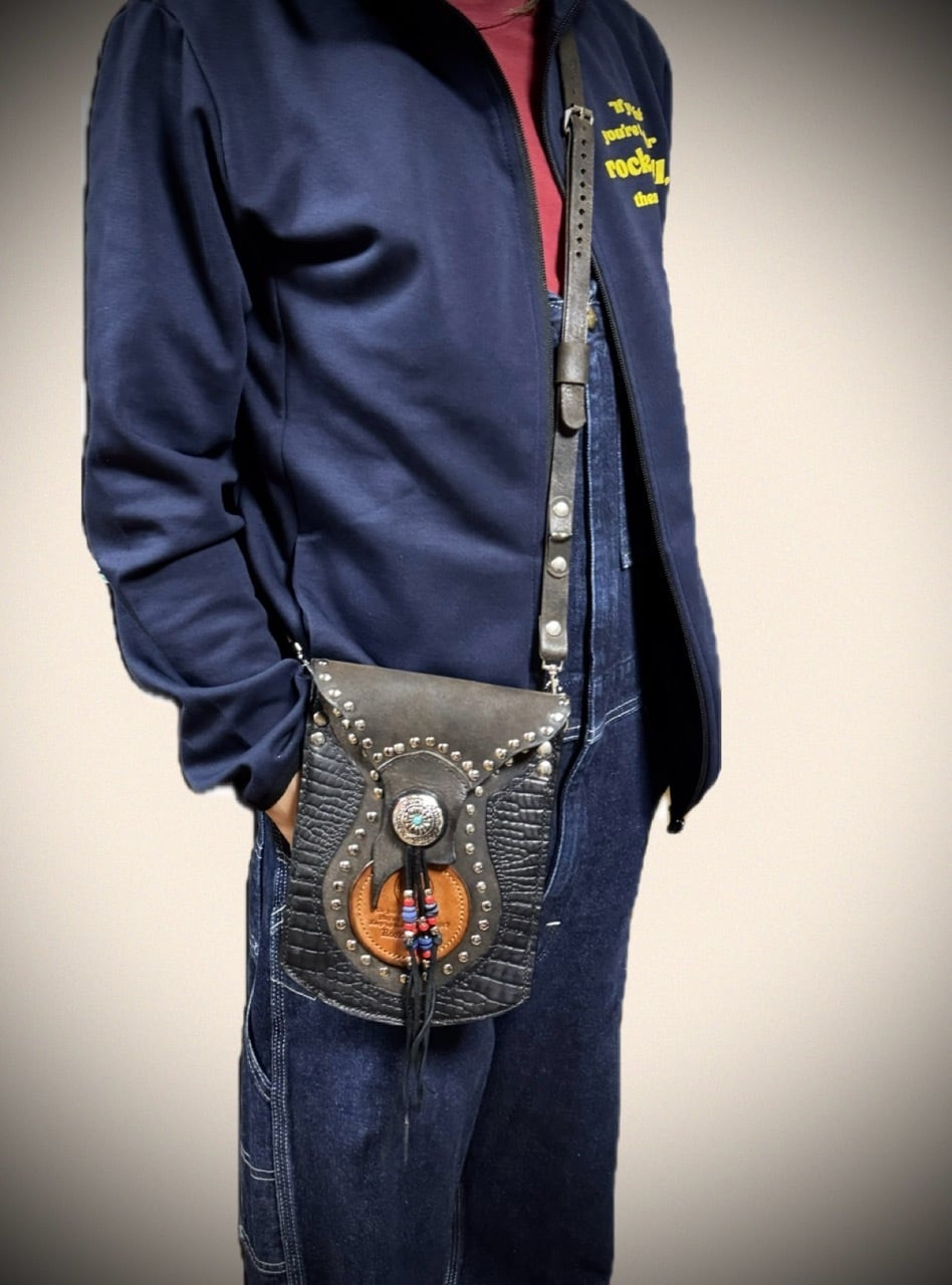 RAMBLERレザー使用 オリジナルポーチ(コンチョ・型押し)