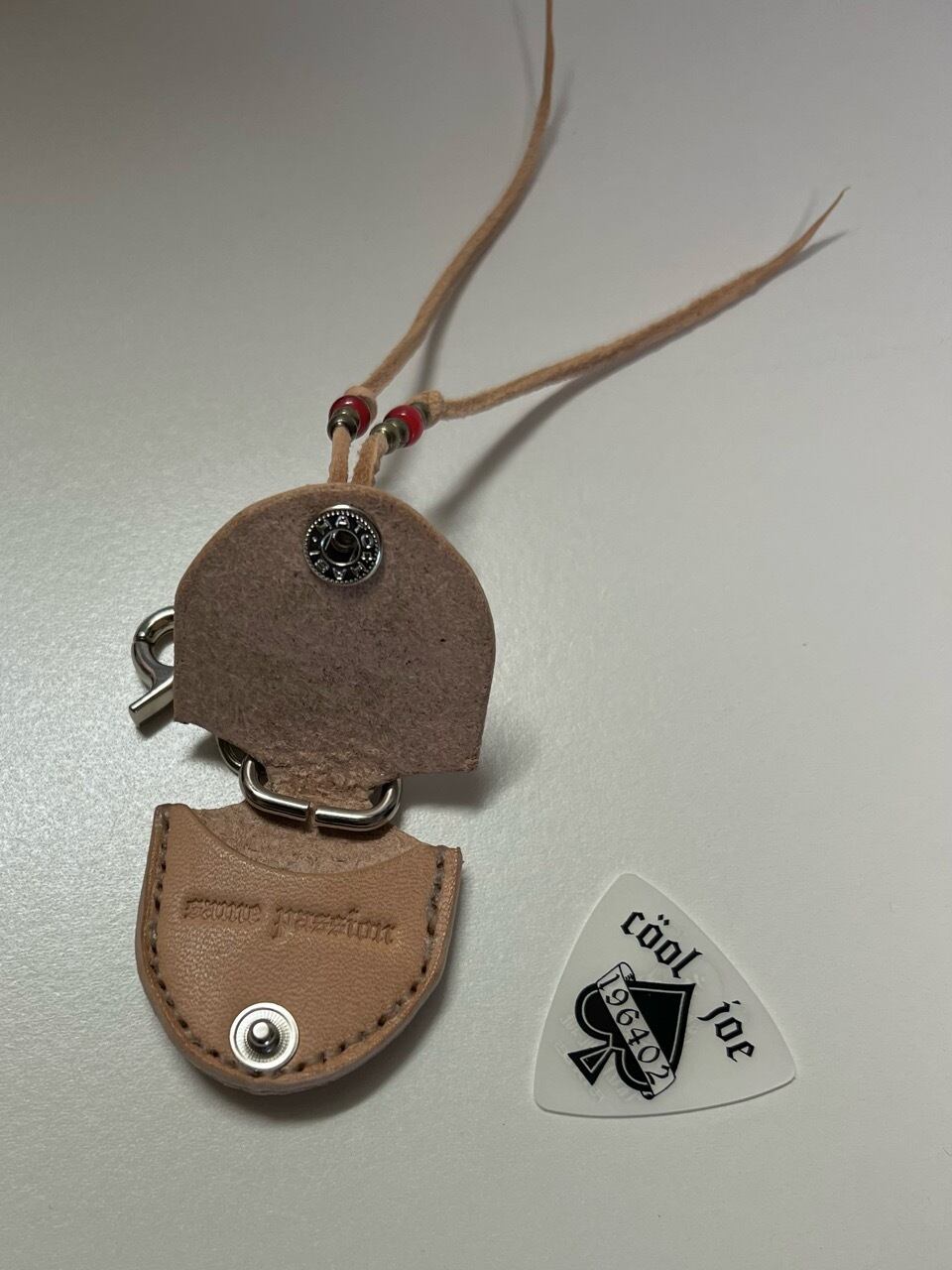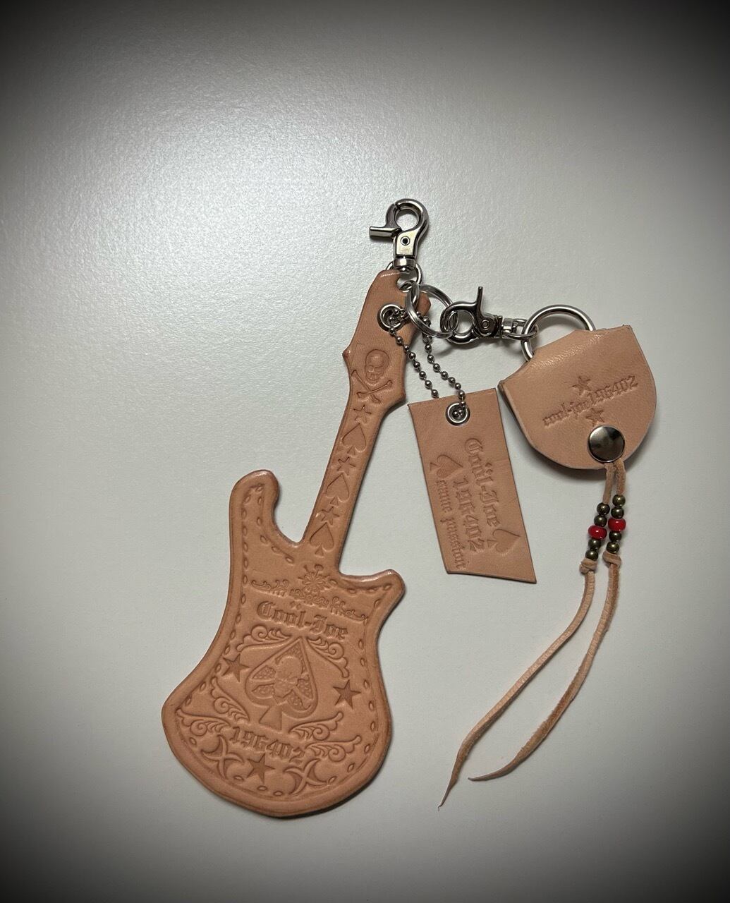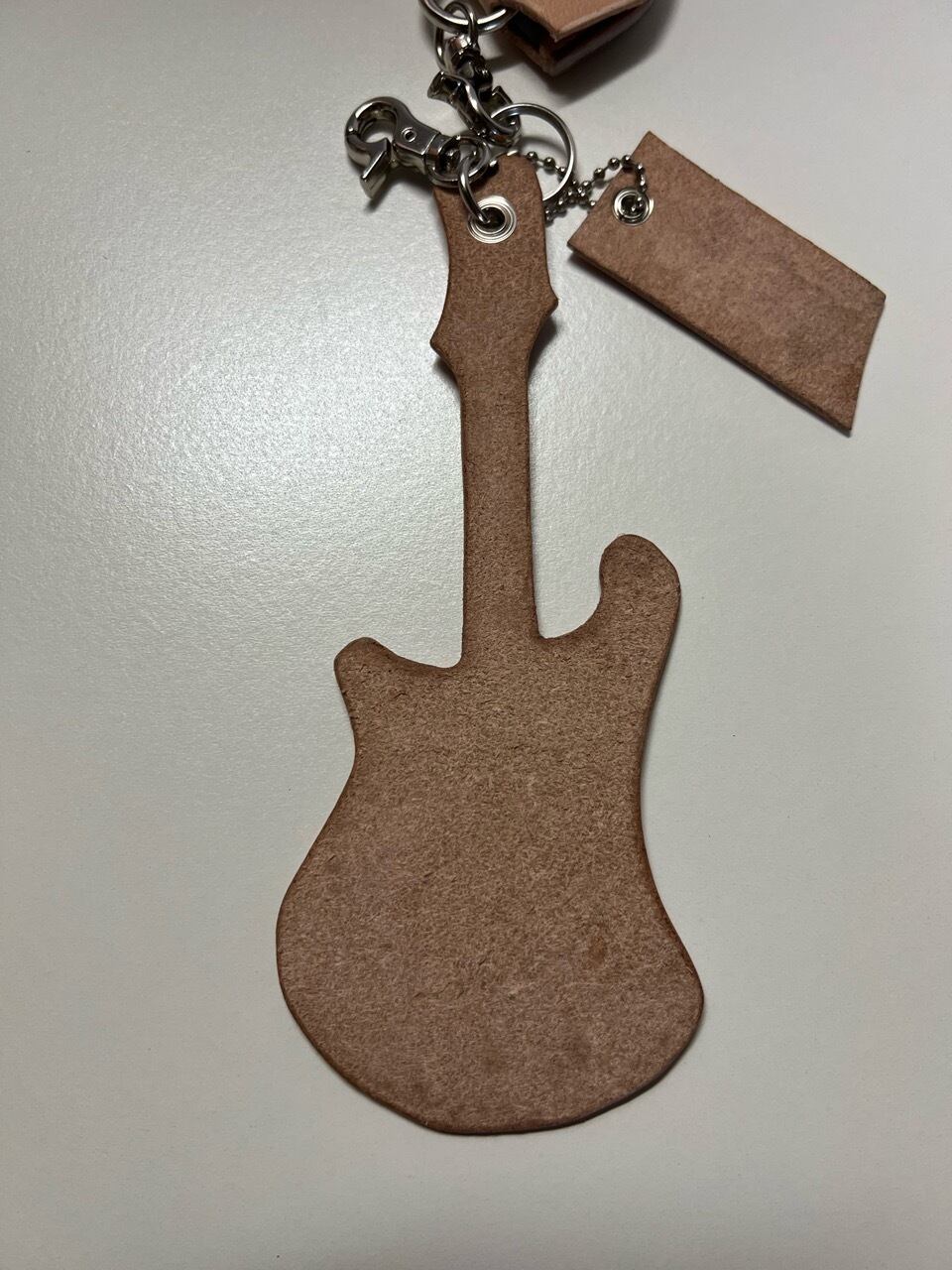 栃木レザー使用 オリジナル リッケン型チャーム&ピックケース(ベージュスペード)
