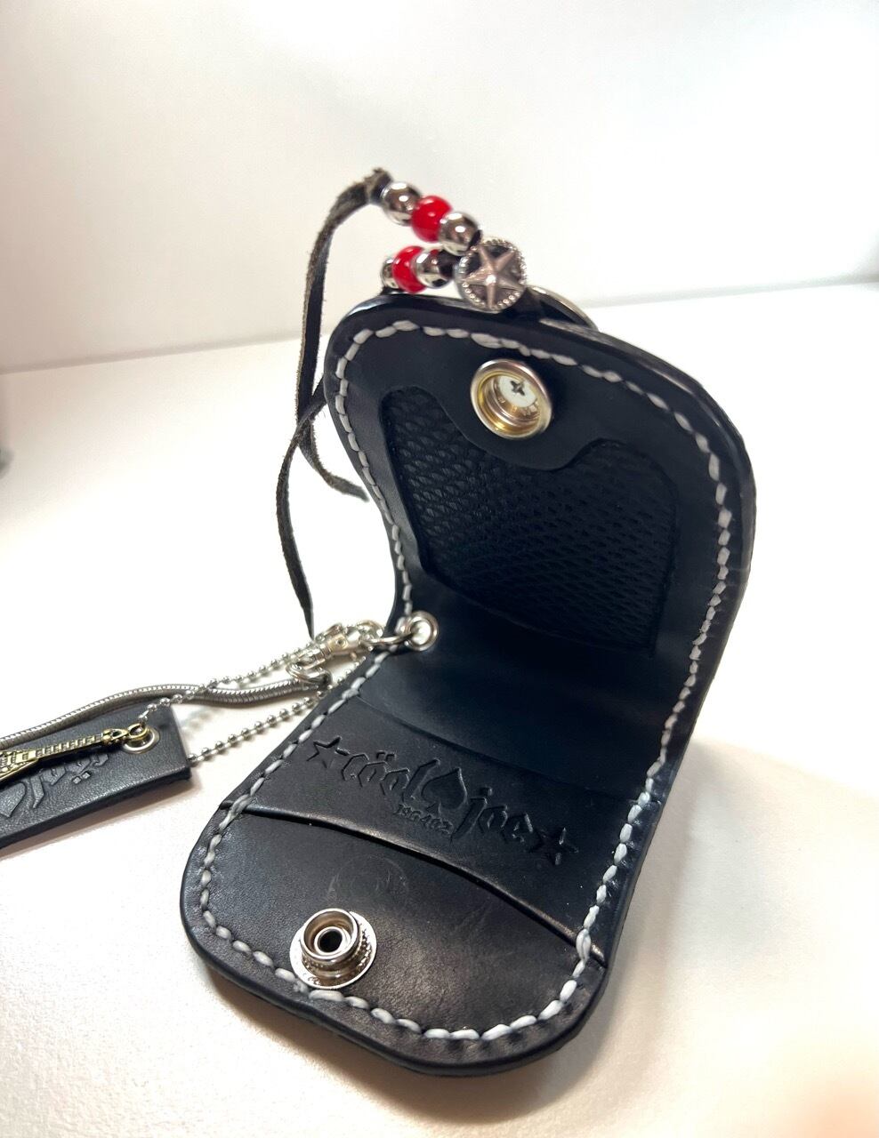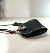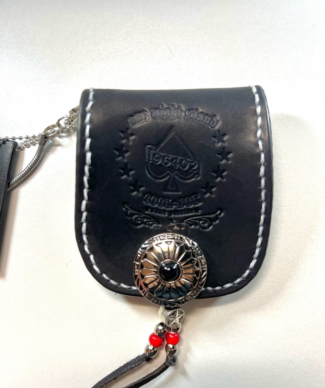 栃木レザー使用 コインケース(ブラック・懐中時計用チェーン付き)