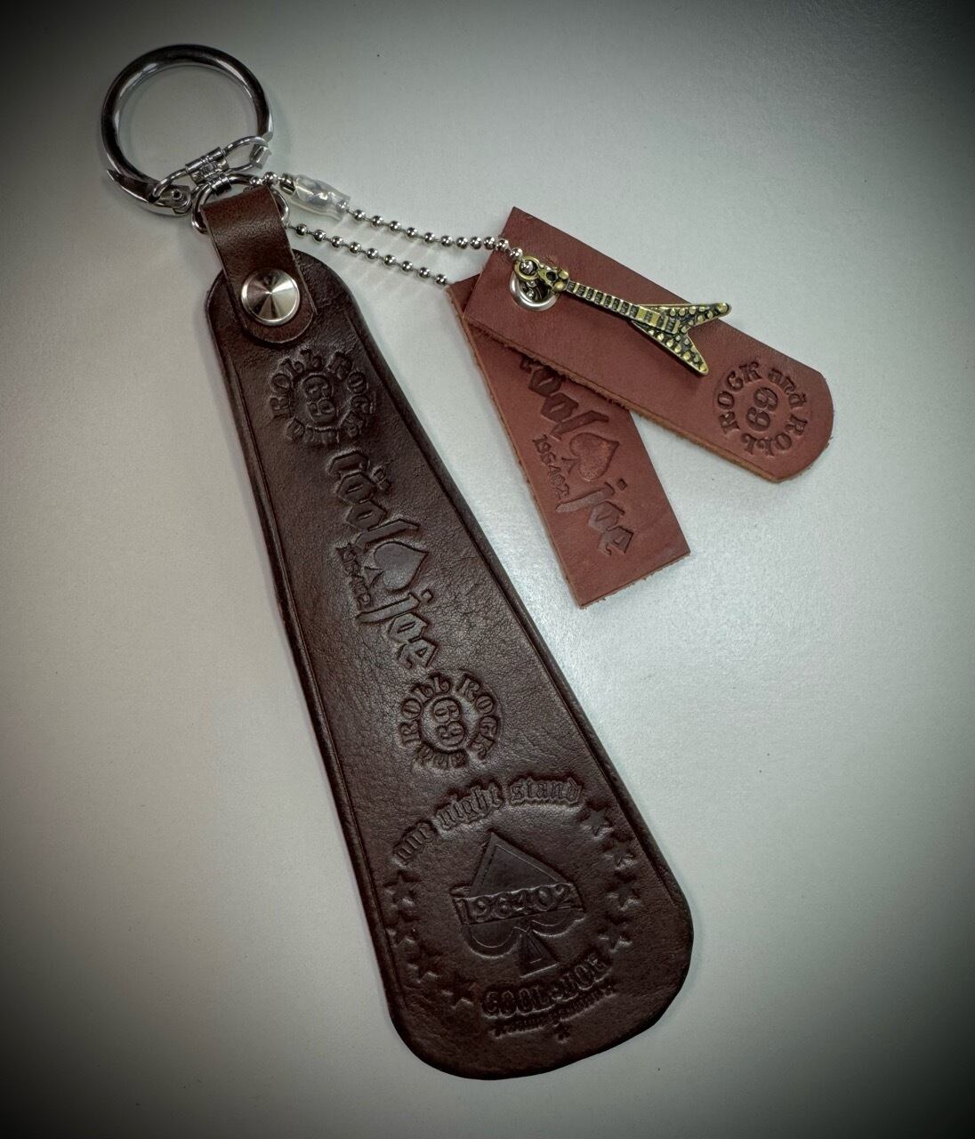 ベジタブルタンニンレザーを使用した オリジナルのデカキーホルダーです